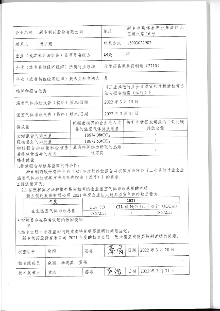 2021年度溫室氣體排放核查報(bào)告